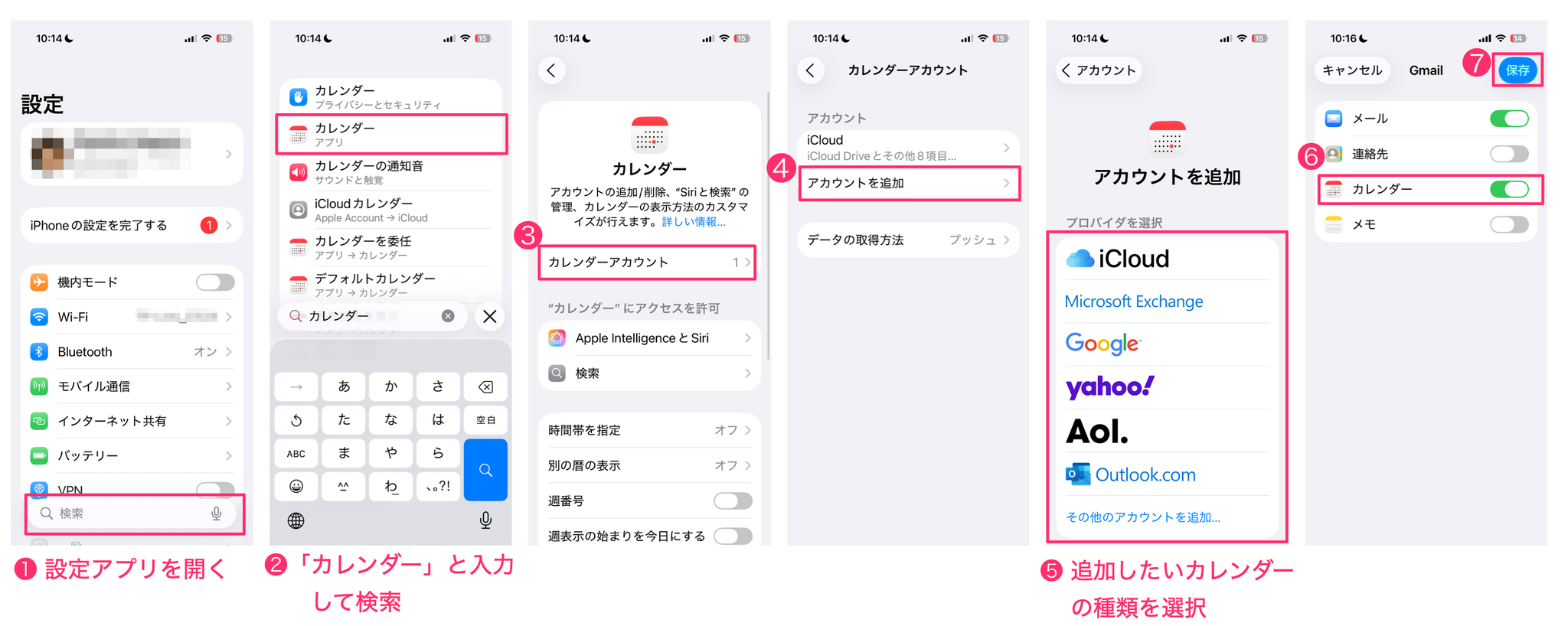 Googleカレンダーなどの連携したいアカウントの追加を行います。